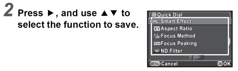 5. The quick dial on the Pentax Q is completely useless to me. In contrast, the quick dial on the Pentax Q7 has two useful functions: Focus Peaking and ND Filter.