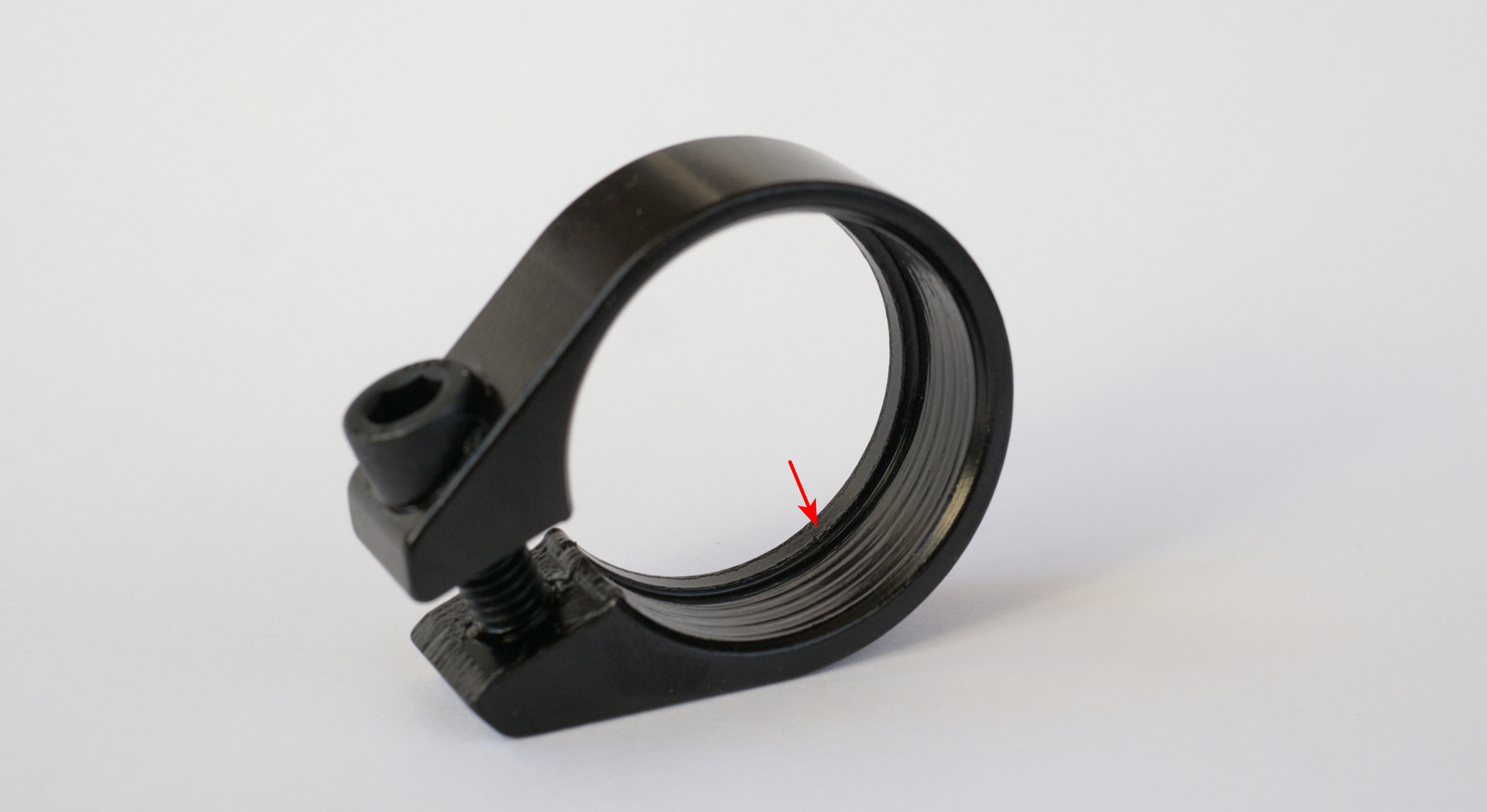 I wanted to make something similar. For the base, I used a standard seatpost clamp for a 31.8mm seat tube. However, such a clamp has a lip that secures it to the seat tube.